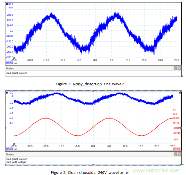 本實(shí)驗(yàn)之所以臺(tái)扇為例,是因?yàn)槠鋬?nèi)置一個(gè)小的交流電動(dòng)機(jī),能夠產(chǎn)生一個(gè)典型的電流波形和低的功率因子。