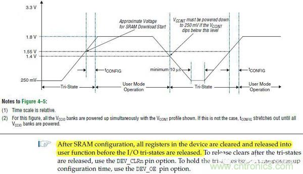 另外,該產(chǎn)品用戶如果希望配置完成后CPLD內(nèi)部各個寄存器的狀態(tài)處于可控或者特定的狀態(tài)(尤其當(dāng)其值不一定是清零的狀態(tài)),那么用戶可以使用器件提供的專用管腳DEV_CLRn來達(dá)到所期望的效果。