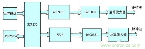 【導讀】本系統(tǒng)以MSP430為控制核心設計并制作一個正弦波和脈沖波信號源。本實驗分為四大模塊,分別是鍵盤掃描模塊,正弦波產(chǎn)生模塊,脈沖波產(chǎn)生模塊和液晶顯示模塊。