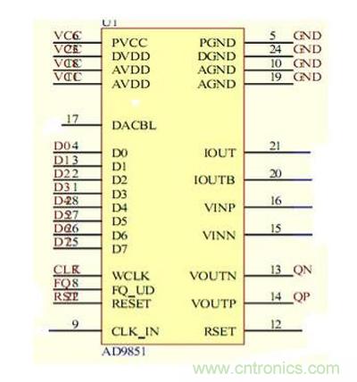 方案三:采用直接數(shù)字頻率合成芯片AB9851,可以很方便地生成正弦波和脈沖波。DDS特別適合于生成頻率低、頻帶寬、頻率穩(wěn)定性和準確度較高及波形復雜的場合。