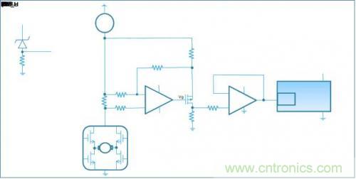 為確保系統(tǒng)正常工作,必須仔細(xì)選擇這些器件參數(shù)。為了使OP_A輸出不飽和,在選擇參數(shù)時(shí)必須保證|Vgs|電壓值很小。
