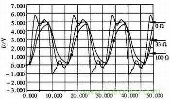 從圖中看出,信號(hào)線(xiàn)加長(zhǎng)后,由于傳輸線(xiàn)的等效電阻、電感和電容增大,傳輸線(xiàn)效應(yīng)明顯加強(qiáng),波形出現(xiàn)振蕩現(xiàn)象。因此在高頻PCB布線(xiàn)時(shí)除了要接匹配電阻外,還應(yīng)盡量縮短傳輸線(xiàn)的長(zhǎng)度,保持信號(hào)完整性。