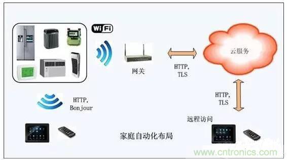 從上圖可看出,家庭自動(dòng)化系統(tǒng)將嵌入式微控制器技術(shù)、無(wú)線連接、接入網(wǎng)絡(luò)融合為一體。Apps軟件能夠使用戶發(fā)現(xiàn)家里的設(shè)備,予以設(shè)置,或者創(chuàng)建一個(gè)動(dòng)作加以控制。