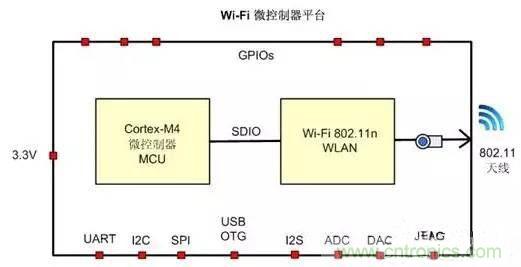 微控制器是家居智能化的關(guān)鍵部件。MCU和Wi-Fi是最基本的兩個(gè)元素。以某一Wi-Fi微控制器為例,它是內(nèi)置全功能微控制器的單芯片SoC,支持802.11n Wi-Fi。