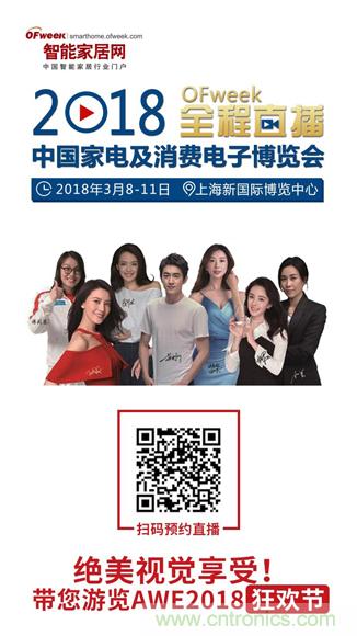 【導(dǎo)讀】OFweek智能家居網(wǎng)小編和林志玲、那英、楊冪、林更新等一線明星,都在2018中國(guó)家電及消費(fèi)電子博覽會(huì)全程直播http://live.ofweek.com/live/116等著你!