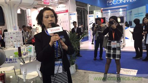 本次展會上,科瑞康醫(yī)療總經(jīng)理王佳介紹了科瑞康醫(yī)療強(qiáng)勢推出的“智慧醫(yī)療、共享健康”整體解決方案及監(jiān)護(hù)儀新品,還有針對女性的盆底康復(fù)治療系統(tǒng)。王經(jīng)理從容詳細(xì)的講解,引來眾多觀眾圍觀。