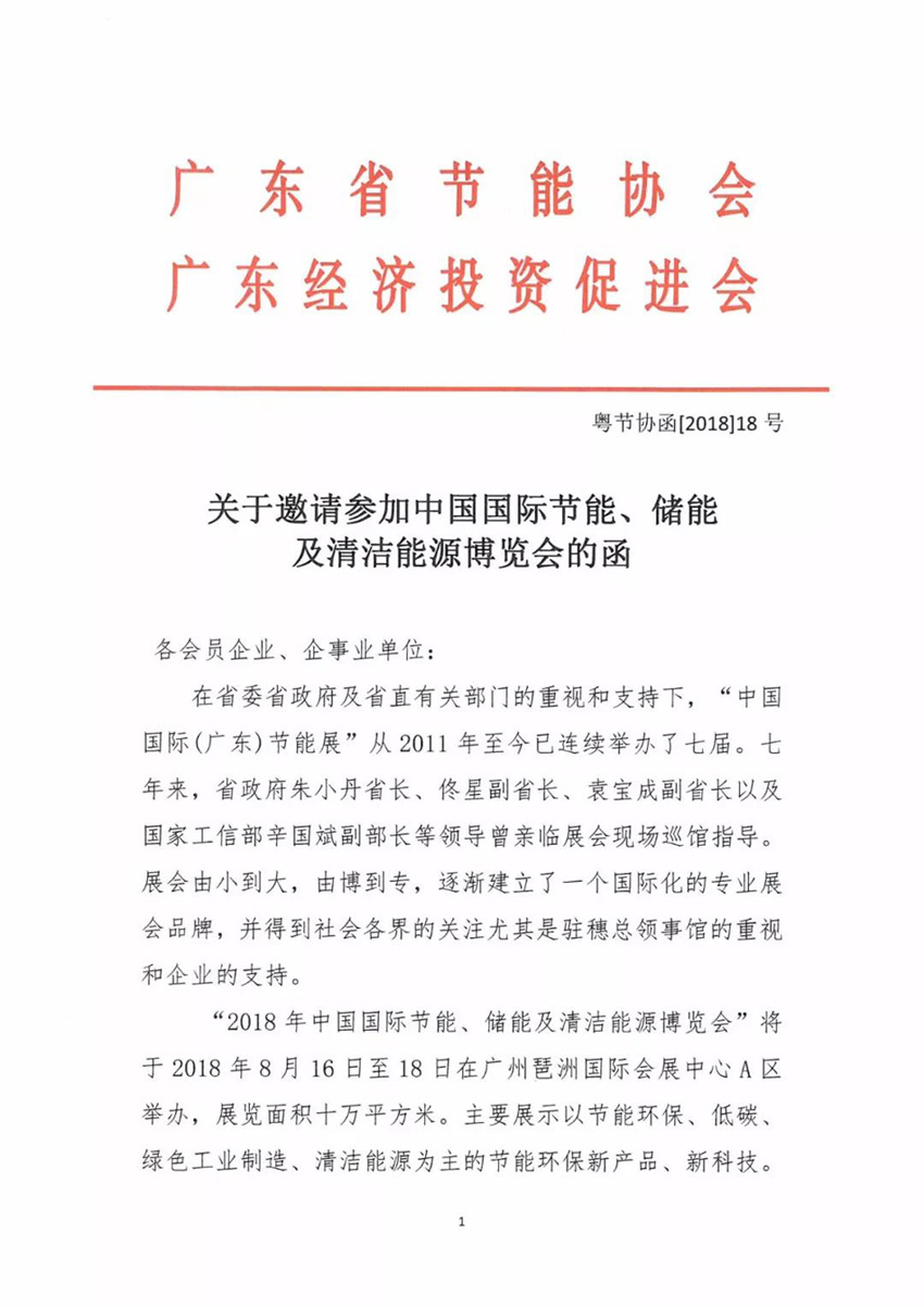 【導讀】關(guān)于邀請參加中國國際節(jié)能、儲能 及清潔能源博覽會的函。