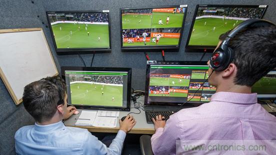 VAR成員可以利用基于光纖的無線電系統(tǒng)與場上的裁判通話,而來自33臺直播攝像機和兩臺專用的越位攝像機的畫面則通過同一個網絡直接傳輸到視頻操作室。其中8個畫面是超慢動作,4個是極慢動作。在淘汰賽中,還將增加兩臺極慢動作攝像機。