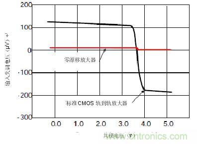圖2.CMOS和零漂移輸入失調(diào)電壓比較