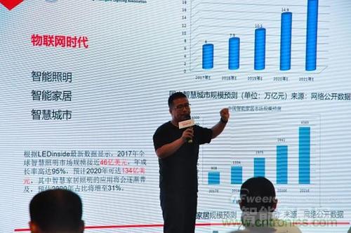 上海浦東智能照明聯(lián)合會(huì)秘書(shū)長(zhǎng)代照亮則為現(xiàn)場(chǎng)觀眾帶來(lái)了物聯(lián)網(wǎng)時(shí)代智能照明領(lǐng)域的最新進(jìn)展。根據(jù)最新數(shù)據(jù)顯示,2017年全球智慧照明市場(chǎng)規(guī)模接近46億美元,年成長(zhǎng)率高達(dá)95%,預(yù)計(jì)2020年可達(dá)134億美元,其中智慧家居照明的應(yīng)用將會(huì)逐漸普及,預(yù)估2020年占比將增至31%。