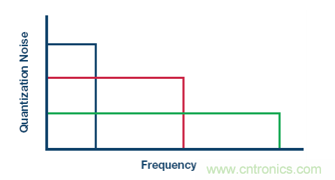 圖 1 顯示了不同采樣頻率下的量化噪聲密度示例。
