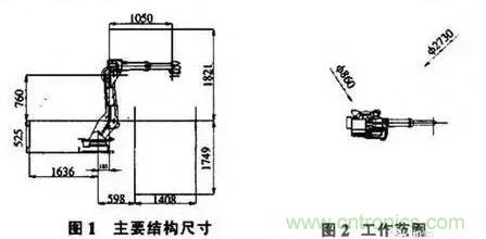 根據(jù)A II—V6L型工業(yè)機(jī)器人的主要參數(shù)進(jìn)行設(shè)計(jì)。主要結(jié)構(gòu)尺寸如圖I所示。機(jī)器人的工作范圍見(jiàn)圖2。