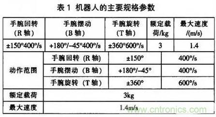 確定了空間結(jié)構(gòu)和手腕結(jié)構(gòu)后,可確定手腕回轉(zhuǎn)、手腕擺動(dòng)及手腕旋轉(zhuǎn)三個(gè)姿態(tài)的自由度。其參數(shù)見(jiàn)表l (參數(shù)來(lái)于SSA2000工業(yè)機(jī)器人)。