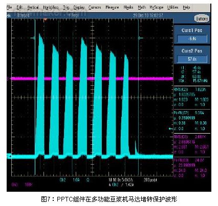 由以上的試驗(yàn)證明,TE connectivity公司研發(fā)出的LVR PPTC和功率電阻集成在一起的組件既可以滿足馬達(dá)的保護(hù)時(shí)間的要求,又可以在一次完整的磨制豆?jié){的周期內(nèi)不誤動(dòng)作,達(dá)到了設(shè)計(jì)和保護(hù)要求。