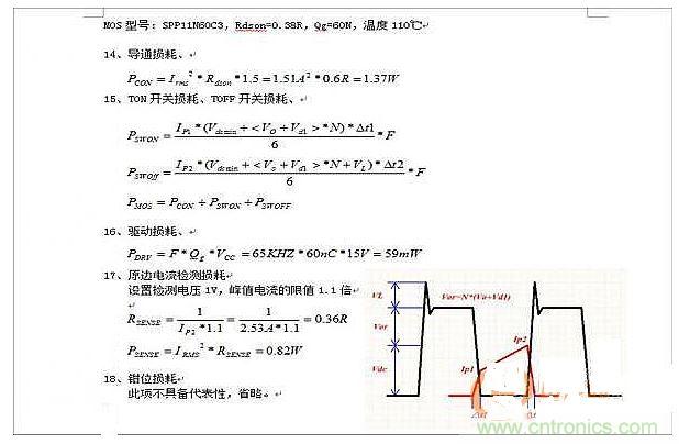 (關(guān)于開關(guān)損耗和導(dǎo)通損耗,上面的計(jì)算方法應(yīng)該是正確的,參考《精通開關(guān)電源》第5章。最有可能會出現(xiàn)的問題是,測量的準(zhǔn)確性如何,因?yàn)檫@會導(dǎo)致計(jì)算值與實(shí)際值相差2--5倍。)