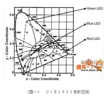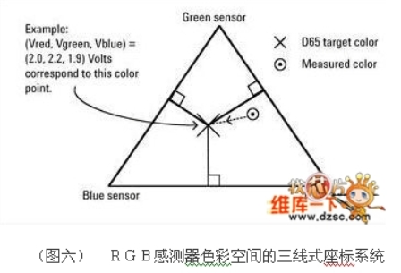 基本上來(lái)說(shuō),三色光感測(cè)器會(huì)產(chǎn)生一個(gè)三維色彩規(guī)格系統(tǒng),因此稱(chēng)為RGB感測(cè)器色彩空間,這個(gè)系統(tǒng)可以讓特定色彩由感測(cè)器的輸出電壓來(lái)指定,例如具備特定亮度的D65白光可以記錄為:(Vred, Vgreen,?。郑猓欤酰澹剑ǎ玻?, 2.2,?。保梗觯铮欤簦蟆?br />