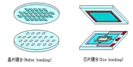 晶片鍵合(Wafer bonding)技術(shù)是指芯片結(jié)構(gòu)和電路的制作、封裝都在晶片(Wafer)上進(jìn)行,封裝完成后再進(jìn)行切割,形成單個的芯片(Chip);與之相對應(yīng)的芯片鍵合(Die bonding)是指芯片結(jié)構(gòu)和電路在晶片上完成后,即進(jìn)行切割形成芯片(Die),然后對單個芯片進(jìn)行封裝(類似現(xiàn)在的LED封裝工藝),如圖6所示。很明顯,晶片鍵合封裝的效率和質(zhì)量更高。由于封裝費(fèi)用在LED器件制造成本中占了很大比例,因此,改變現(xiàn)有的LED封裝形式(從芯片鍵合到晶片鍵合),將大大降低封裝制造成本。此外,晶片鍵合封裝還可以提高LED器件生產(chǎn)的潔凈度,防止鍵合前的劃片、分片工藝對器件結(jié)構(gòu)的破壞,提高封裝成品率和可靠性,因而是一種降低封裝成本的有效手段。