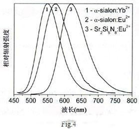 [page]2007年日本材料科學研究所納米陶瓷中心得到的結(jié)果是最高的[3],他們采用中心波長為450nm的InGaN藍光LED和光子轉(zhuǎn)換效率高、在450nm藍光范圍 有強吸收峰、溫度系數(shù)低的三種熒光粉進行了試驗,這三種熒光粉分別為:α-sialon: Yb2+、α-sialon: Eu2+和Sr2Si5 N8: Eu2+。這些熒光粉的特點是發(fā)光效率的熱衰減較小,在