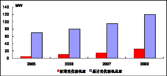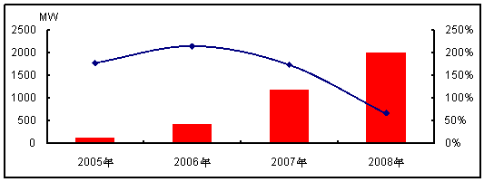 圖 2 2005-2008年中國太陽能電池裝機(jī)量