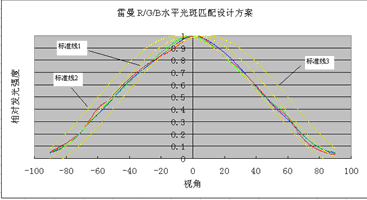 壓在三條標(biāo)準(zhǔn)線之間的是我們雷曼R/G/B的光強(qiáng)分布曲線,從圖中可以看出,我們的產(chǎn)品設(shè)計(jì)是能夠滿足高品質(zhì)顯示屏需求的。