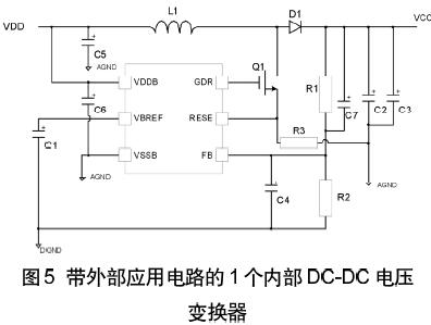 這是一個(gè)開(kāi)關(guān)電壓產(chǎn)生電路,專為手持設(shè)備設(shè)計(jì)。在SSD1338中,內(nèi)置的DC-DC電壓轉(zhuǎn)換器,配合外部應(yīng)用電路(如圖5),可以經(jīng)由低壓供電VDD產(chǎn)生高壓驅(qū)動(dòng)Vcc,能供給OLED驅(qū)動(dòng)電路。以下的示例是一個(gè)3V的VDD輸入產(chǎn)生一個(gè)12V,20到30毫安Vcc輸出的應(yīng)用。