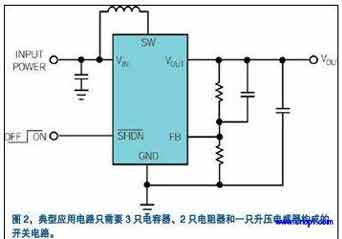 LinearTechnology公司推出的LTC3459是解決這些應(yīng)用問(wèn)題的一系列升壓轉(zhuǎn)換器中的一個(gè)例子。LTC3459這種器件有一種突發(fā)模式,用以在輕載電流下保持轉(zhuǎn)換器的效率。它還具有浪涌電流限制、短路保護(hù)和關(guān)機(jī)期間負(fù)載隔離等功能。盡管具有這些功能,但典型的應(yīng)用電路只要求在開(kāi)關(guān)電路中有三只電容器、兩只電阻器和一個(gè)升壓電感器(圖2)。Wells說(shuō),因?yàn)?ldquo;轉(zhuǎn)換器工作時(shí)的峰值電流小約75mA,所以一個(gè)0805小型電感器……能輕易達(dá)到與一個(gè)集成電荷泵相同的占用電路板面積。”