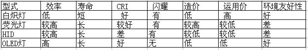 (2)OLED燈與現(xiàn)有光源的比較