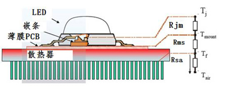 圖3.LED到散熱器各個熱阻的示意圖