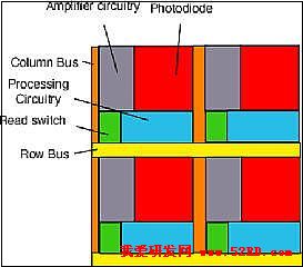 CCD與CMOS電路結構之完整比較(摘錄自SHARP月刊)差異分析整體來說,CCD與CMOS兩種設計的應用,反應在成像效果上,形成包括ISO感光度、制造成本、解析度、雜訊與耗電量等,不同類型的差異:ISO感光度差異:由于CMOS每個畫素包含了放大器與A/D轉換電路,過多的額外設備壓縮單一畫素的感光區(qū)域的表面積,因此在相同畫素下,同樣大小之感光器尺寸,CMOS的感光度會低于CCD?!?br />
