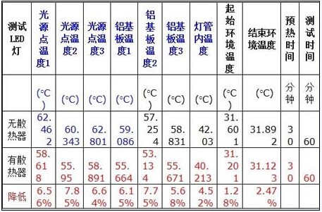 熱傳導的途徑有三種,對流、傳導及輻射。在封閉的環(huán)境中,對流及傳導實現的可能較小,而通過輻射將熱散發(fā)出來,是日光燈管考慮的重點。以下是我們做的LED日光燈管的測試數據,在LED銀腳焊點外測出的溫度才58度。
