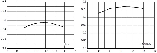 這參考設(shè)計(jì)在不同交流輸入電壓條件下的輸出電流及在不同直流電壓條件下的能效測試結(jié)果分別如圖3a及3b所示。其中,如圖3b所示,這參考設(shè)計(jì)在11至17 Vdc范圍下能效高于0.75,這個(gè)能效數(shù)據(jù)在這類低功率應(yīng)用中表現(xiàn)亮眼。