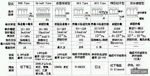 然電漿顯示器(plasma)與LCD(LiquidCrystalDisplay)等平面顯示器(FlatPanelDisplay)已經(jīng)進入商品化階段,不過耗電量、輝度、對比以及動畫反應(yīng)時間等問題,若與傳統(tǒng)CRT比較時仍有改善的空間,另一方面有機EL等諸多新世代平面顯示器(表1)卻面臨制程、成本、使用壽命、大型化等瓶頸,因此至今仍無法實用化。有鑑于此松下電工與東京農(nóng)工大學(xué)利用BSD(BallisticelectronSurfaceemittingDevice)概念制作場發(fā)射顯示器(FED:FieldEmittingDisplay)。