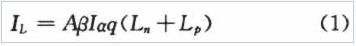 式中,A為p-n結(jié)面積,q是電子電量,Ln、Lp分別為電子和空穴的擴(kuò)散長(zhǎng)度,J表示以光子數(shù)計(jì)算的平均光強(qiáng),α為p-n結(jié)材料的吸收系數(shù),β是量子產(chǎn)額,即每吸收一個(gè)光子產(chǎn)生的電子一空穴對(duì)數(shù)。