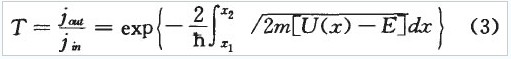 其中q為電子電量,m為電子質(zhì)量,矗為普朗克常數(shù),vx、vy、vz分別是電子在x、y、z方向的隧穿速度,T(x)為電子的隧穿概率。又任意勢(shì)壘的電子隧穿概率可表示為