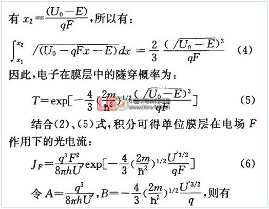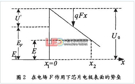 x指向?yàn)樾酒姌O表面到壓焊點(diǎn),為膜層中z方向任意點(diǎn)的勢(shì)壘,E是垂直芯片電極表面速度為vx電子的能量。