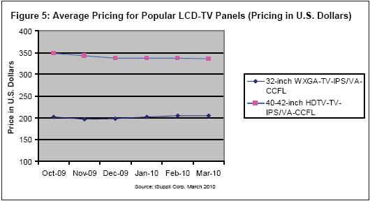 據(jù)iSuppli公司的液晶價格追蹤服務(wù),由于2009年末價格上漲,加之中國春節(jié)期間電視銷售情況一般,電視液晶面板價格預(yù)計在3月保持不變,甚至某些大尺寸面板還會略有下降。