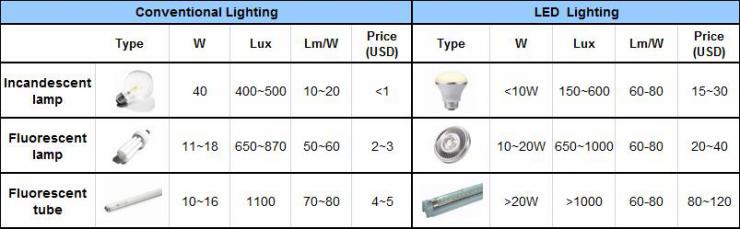 盡管白熾燈泡退出市場后,給予LED燈泡很大的成長空間。但是LED照明面臨較大的問題就是要與傳統(tǒng)的螢光燈泡競爭?,F(xiàn)階段無論是發(fā)光效率或是零售價格上,LED燈泡還是很難與傳統(tǒng)的螢光燈泡挑戰(zhàn)。因此在行銷上,還是以使用壽命、節(jié)省電費(fèi)、不含汞等議題來作為主要的訴求。