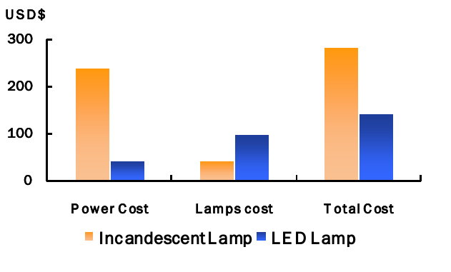 以7W的 LED燈泡為例,2009年初,一顆7W LED燈泡成本將近15美元到20美元,零售價格多半在50美元以上。不過隨著LED成本的降低,目前7W LED燈泡成本下降至12元美金左右。零售價格也壓低到30美元附近。而隨著LED燈泡成本下降,LED燈泡替代白熾燈泡的優(yōu)勢越趨明顯。