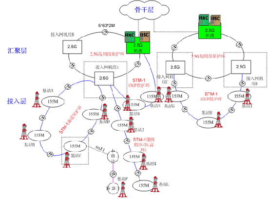 圖1中國(guó)移動(dòng)2G基站回傳所使用的SDH/MSTP技術(shù)方案