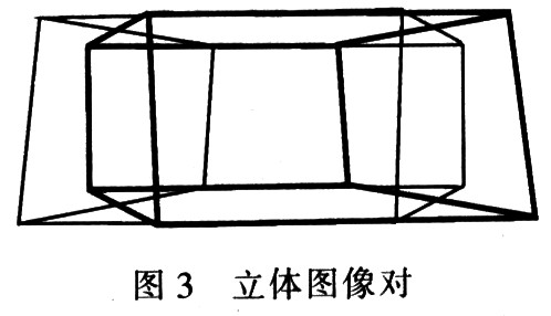 使用簡單的濾光鏡就可觀察有立體感的圖像。其原理是:由于濾光片(實(shí)驗(yàn)中使用紅、綠濾光片)吸收其他光線,只讓相同顏色的光線通過,因此左、右眼各透過不同顏色的光。當(dāng)使用濾光鏡觀察計(jì)算機(jī)屏幕上的立體圖像對(duì)時(shí),就會(huì)看到具有深度感受的圖像。在實(shí)驗(yàn)中發(fā)現(xiàn),刷新頻率對(duì)圖像立體效果的形成具有重要作用。刷新頻率過低,由于人眼所維持的圖像已消失,不能得到三維立體感受;刷新頻率過高就會(huì)出現(xiàn)一只眼睛可看到兩幅圖像的現(xiàn)象。將顯示的刷新頻率設(shè)置合適,在程序中設(shè)置圖像刷新頻率設(shè)置為50Hz,利用紅綠濾光鏡觀察模型的立體成像,得到較明顯的立體視覺效果。