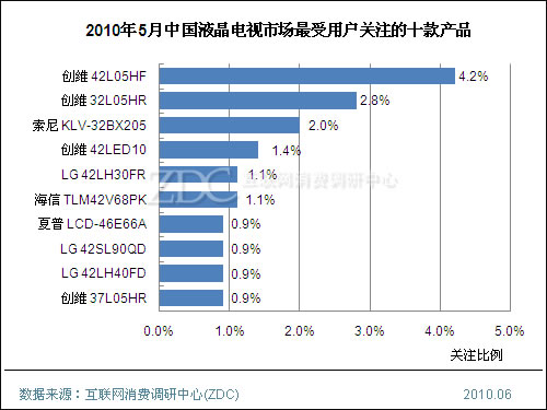 (圖)2010年5月中國(guó)液晶電視市場(chǎng)最受用戶關(guān)注的十款產(chǎn)品