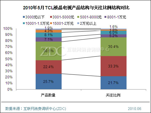 (圖)2010年5月TCl液晶電視產(chǎn)品結(jié)構(gòu)與關(guān)注比例結(jié)構(gòu)對(duì)比