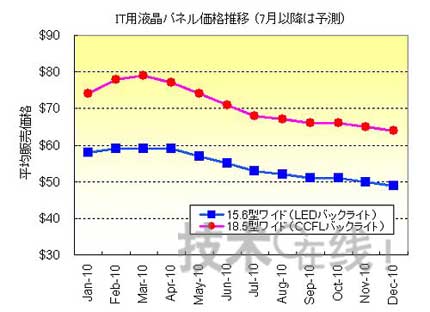 圖1:IT用液晶面板價格走勢(7月份以后為預(yù)測值)