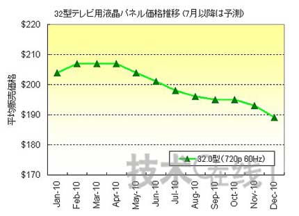 考慮到電視機廠商的面板以及完成品的庫存調(diào)整沒有取得進(jìn)展,針對2010年下半年的需求期,面板供貨量本身的增加將趨于緩和。包括暢銷的32英寸電視機面板、筆記本電腦用面板和顯示器用面板在內(nèi),液晶面板的庫存調(diào)整將很有可能從7月份持續(xù)到8月份。因此,8月份的面板價格不會反彈,將與上月持平(價格維持)或繼續(xù)保持小幅調(diào)整。而且,很有可能從季節(jié)需求告一段落的11月前后開始加速下滑。另外,筆者想事先補充的一點是:如果9月份以后面板及完成品繼續(xù)進(jìn)行存調(diào)整,那么不用等到11月,面板價格就有可能開始加速下滑。