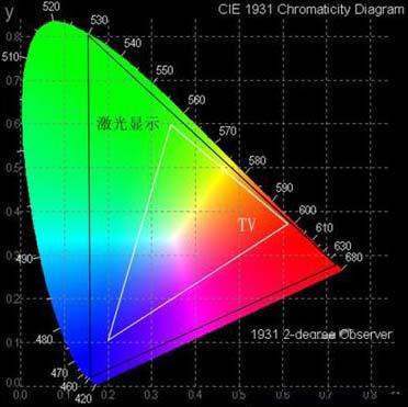 紅、綠、藍激光在人眼可見光譜國際標準色域圖中色域覆蓋率