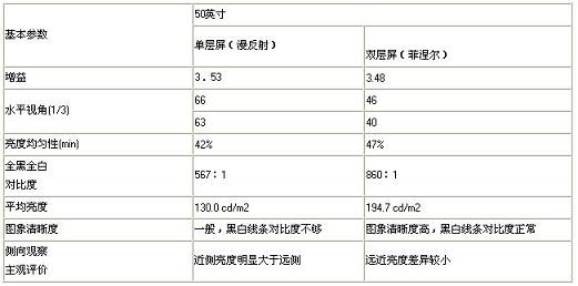 (A)某品牌散射幕和光學(xué)幕的主要參數(shù)對比