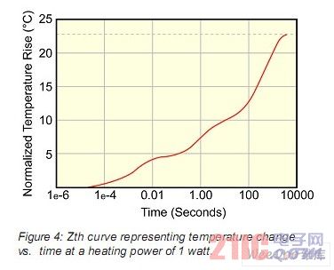 在電子行業(yè),術(shù)語“Z”代表阻抗,在我們的例子中代表熱阻抗。在熱阻抗的曲線中,其表示溫差除以熱功耗的值。因此,圖4中的Z曲線表述了對(duì)于1W熱功耗的溫度改變。