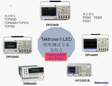 圖1:泰克專門(mén)針對(duì)LED照明應(yīng)用提供各種測(cè)試解決方案組合供客戶選擇。