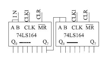 由單片機(jī)P1 口三個管腳分別輸出信號,74LS164 將串行信號變?yōu)椴⑿行盘枺漭敵龆薗0-Q7 分別與紅綠藍(lán)三基色LED 公共端連接,在時鐘CLK1 的控制下可依次輸出高電平。此電路為串行數(shù)據(jù)控制并行口,因此可任意擴(kuò)展。