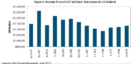 - 6月份平板電視的平均價(jià)格達(dá)到1133美元